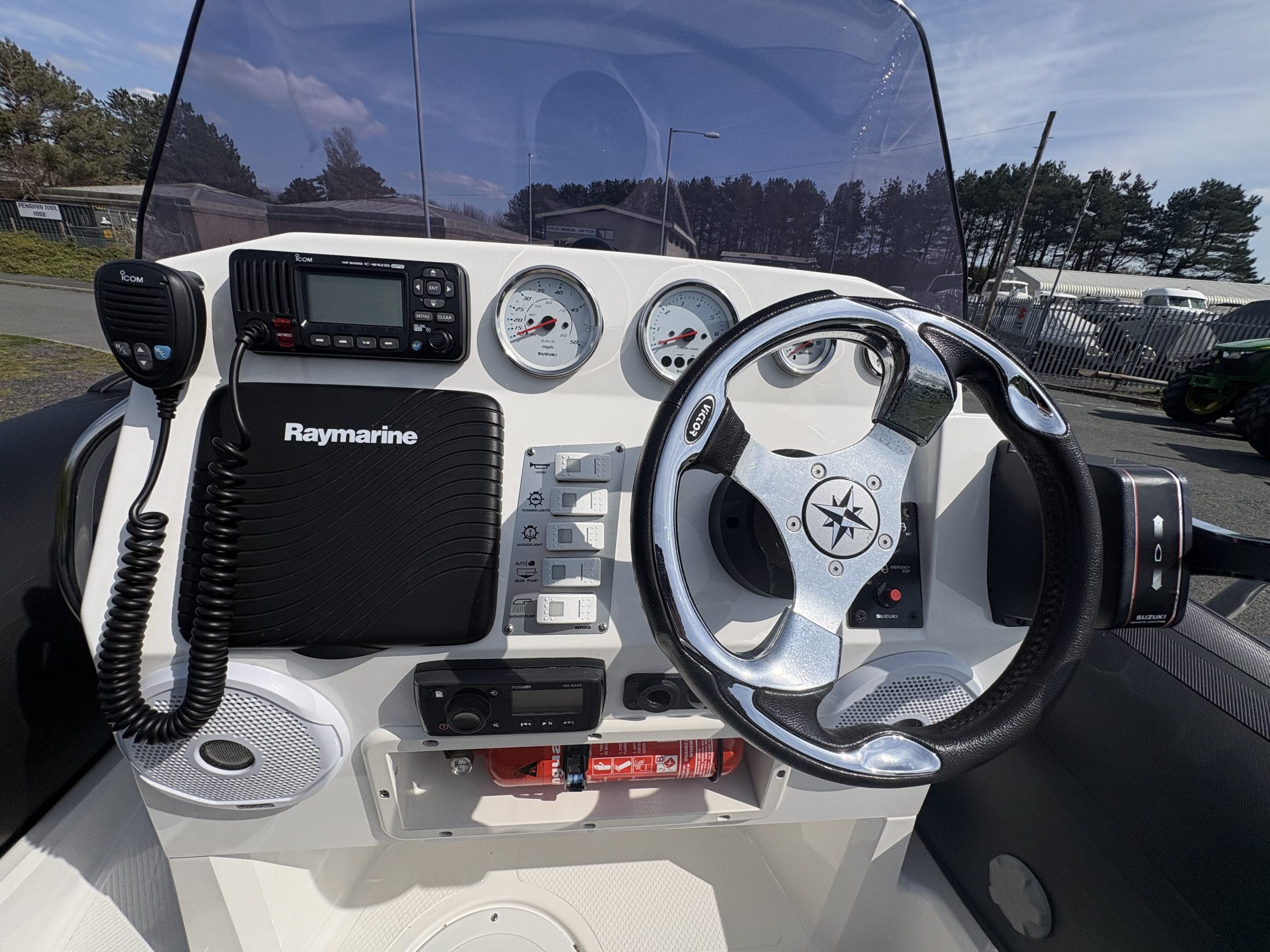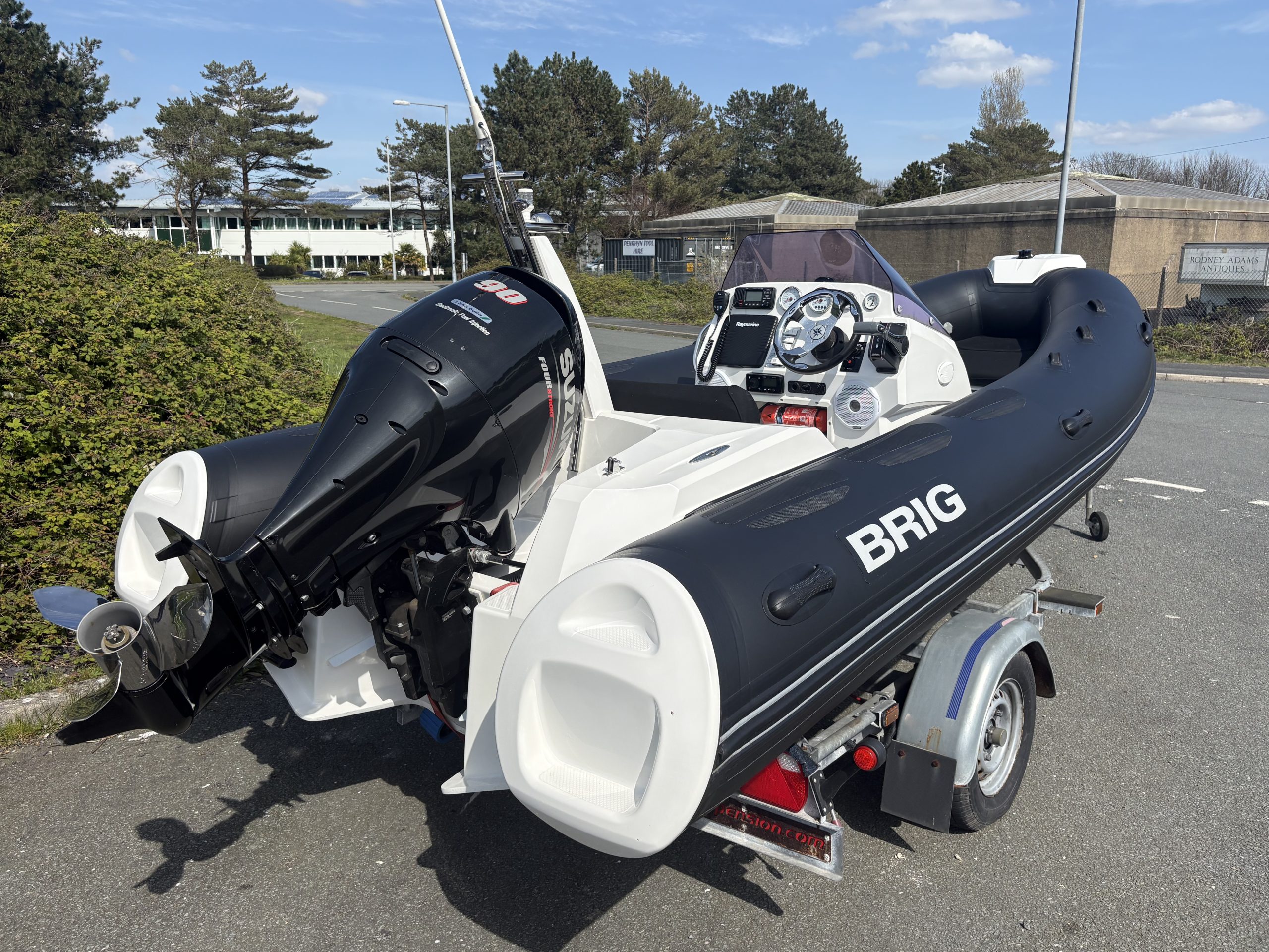 Brig RIBs need little introduction, born from the same Ukrainean heritage as GRAND RIBs, and the Brig E480 deserves its rightful place in the Brig crown.  Powered by the super economic and equally thrilling Suzuki DF90 (with only around 120hrs – TBC), which has a stainless steel prop, this Brig E480 is a memory-making machine and ideal family RIB.  Fully loaded with electronics (iCom VHF; Raymarine Dragonfly Chartplotter; Fusion MS-RA55 stereo and two pairs of speakers; and a 12v socket) this Brig E480 has also had a removeable ladder fitted to the transom to facilitate getting in and out of the water.  It also comes with a bespoke heavy duty all over cover which wraps around the tubes.